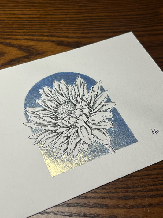 Art - Dahlia Ink Drawing with Metallic Details - Original Art
