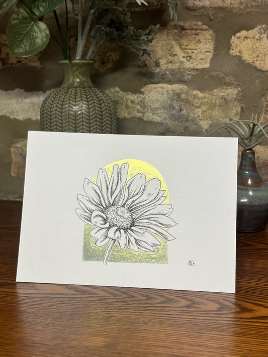 Art - Daisy Ink Drawing with Metallic Details - Original Art